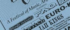 New music today: LOLLYGORE and MARIE LAVEAU. Get it now! CHARLES BARKENBUS sends this in and writes: "I like the site. I'd like to see more of the less well known bands represented too." Dude, EVERY band on this site is less well known. Case in point, our random Frech poster even decries the relative obscurity of The THOUGHT INDUSTRY.