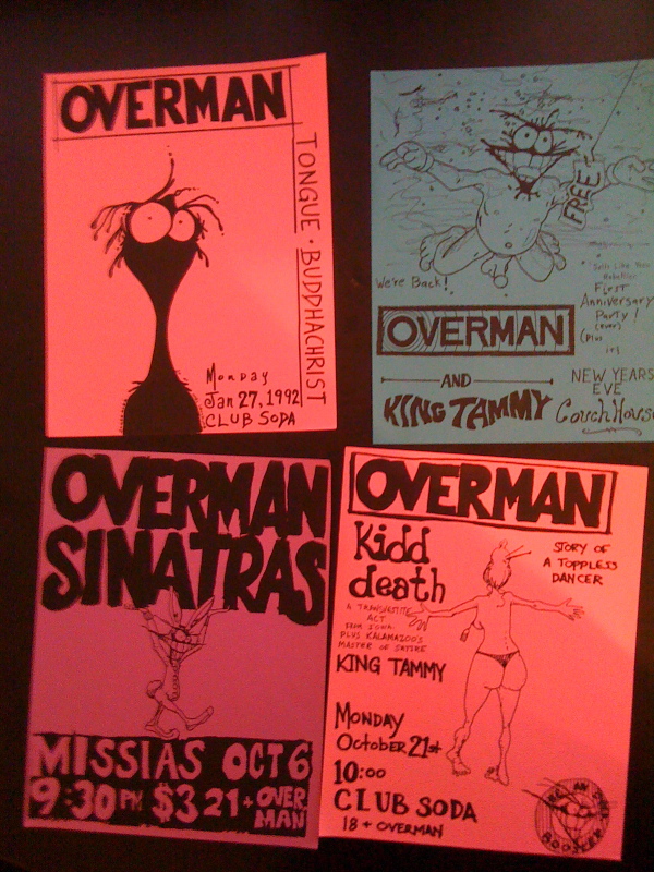 I'm pre-dating this post in the name of efficiency. Today marks the 20th Anniversary of OVERMAN's debut (house party on New Year's Eve 1991 in a heatless, kegless house, and then on the 2nd at Club Soda w/ the Sinatras). Whether you give a fig about Overman or not, 20 years is a fine howdoyoudo.